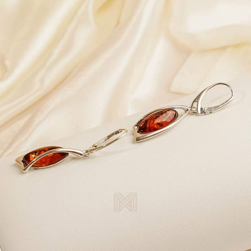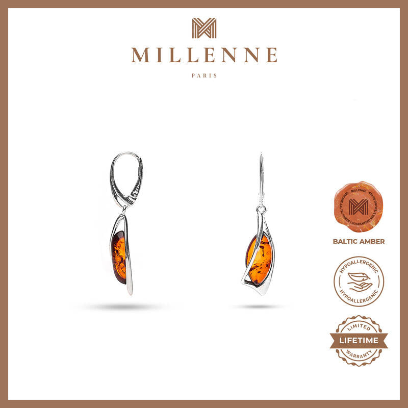 MILLENNE Multifaceted Baltic Amber Sailling Silver Earrings with 925 Sterling Silver